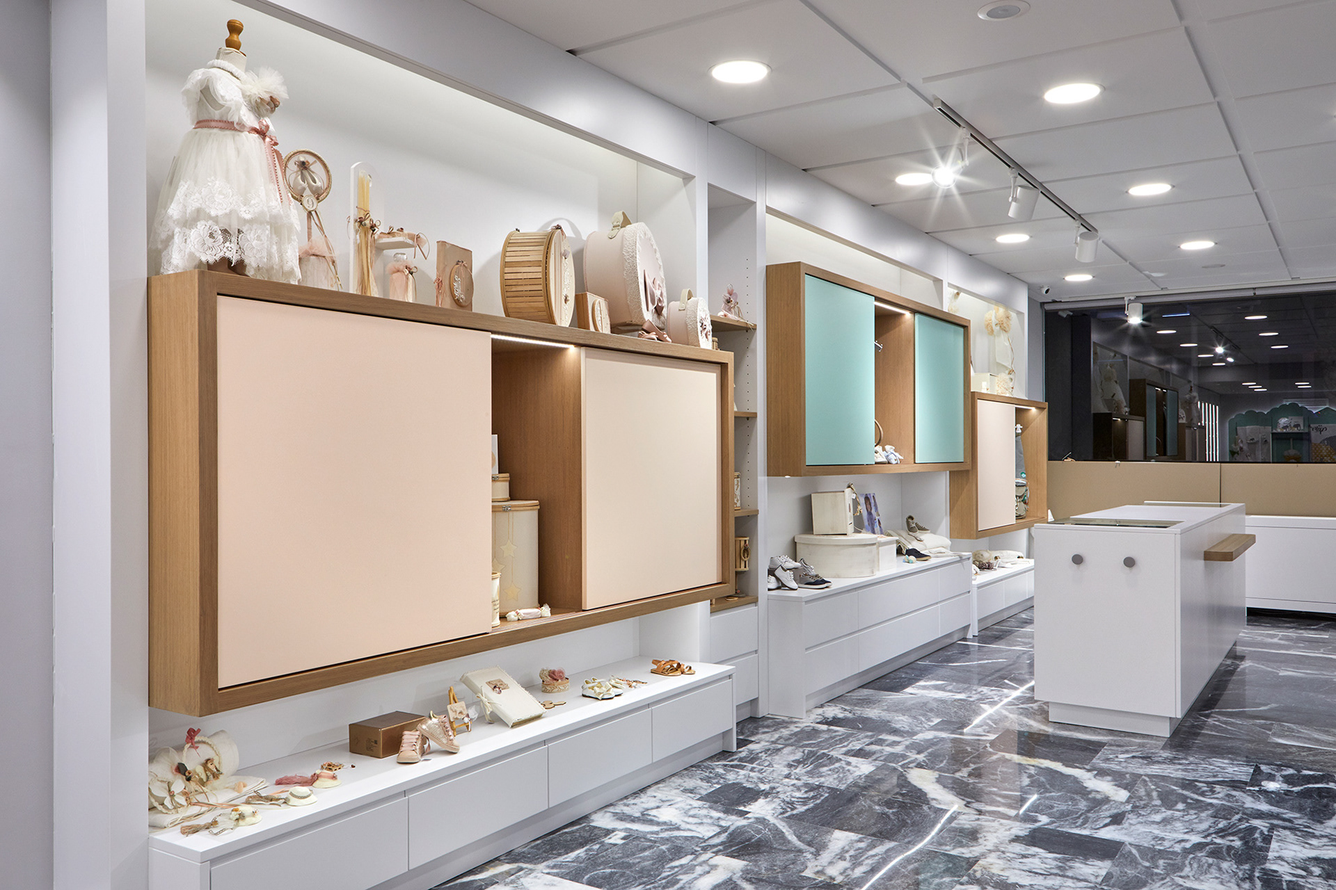 Interior design of the BLESS store in Argyroupoli which sells products for weddings & baptisms and also planning events.