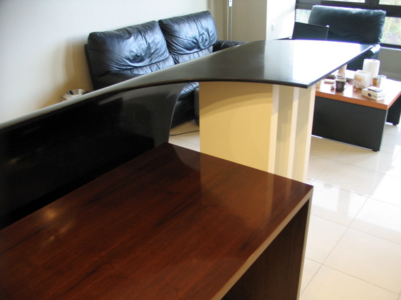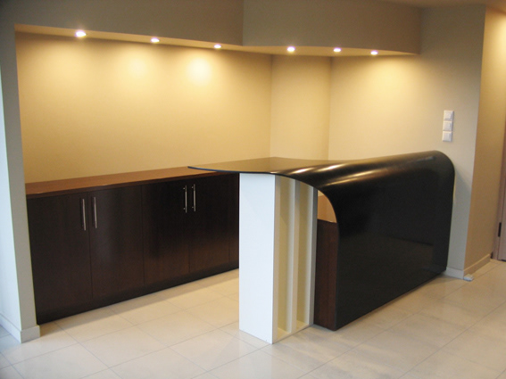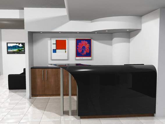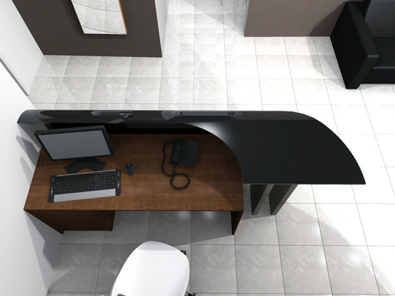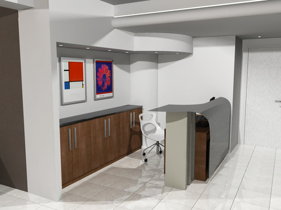 Design of a reception desk for the entrance - waiting room of a dermatology clinic.